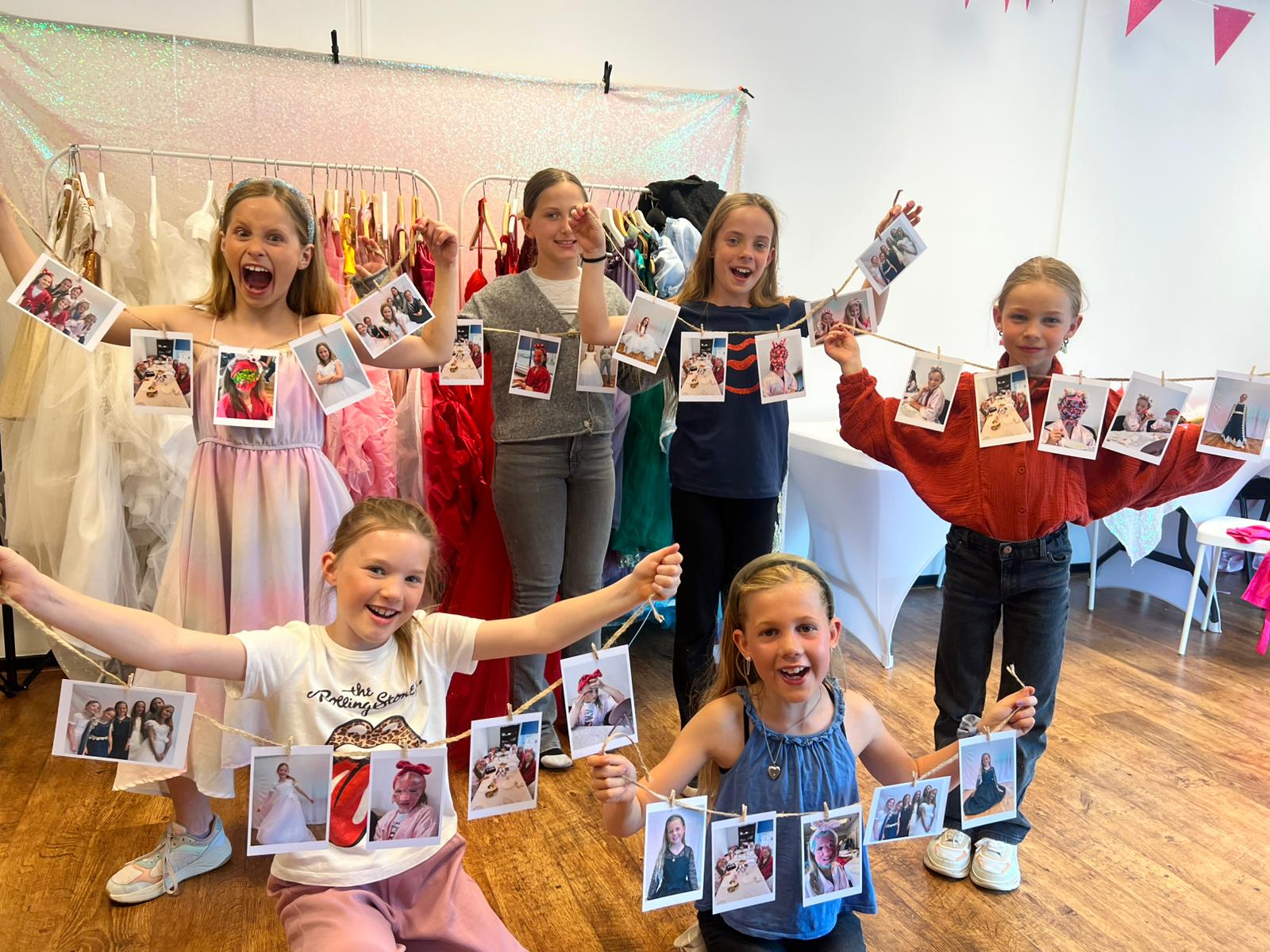 De polaroid fotoketting is onderdeel van alle drie uurs kinderfeestjes,
