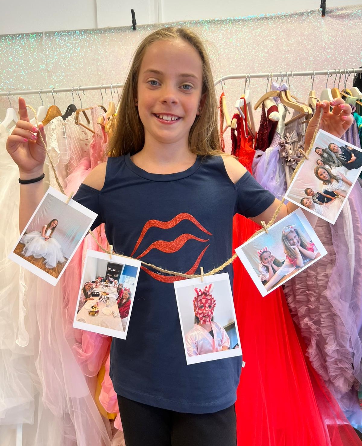 Met een gezichtsmasker op, tijdens het nagellakken, voor onze glitterwand in zuurstok roze badjas en in een fantastische (zelf gekozen!) gala- of feestjurk. De foto’s worden direct ter plekke geprint, zodat iedereen meteen het resultaat kan zien.
